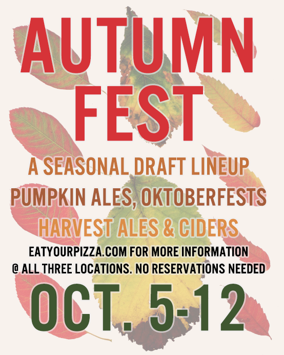 A seasonal draft lineup; Pumpkin Ales, Oktoberfests; Harvest Ales & Ciders